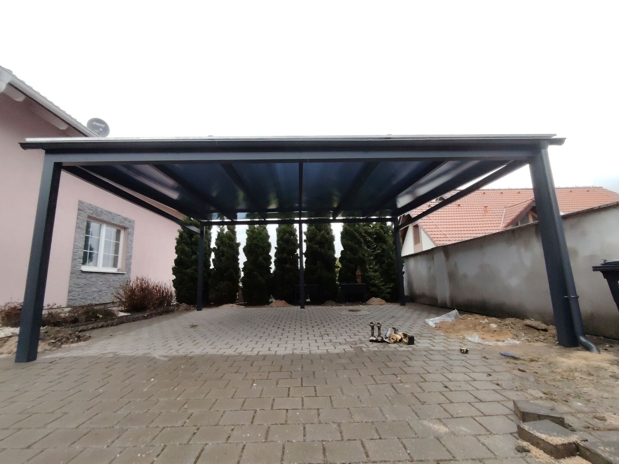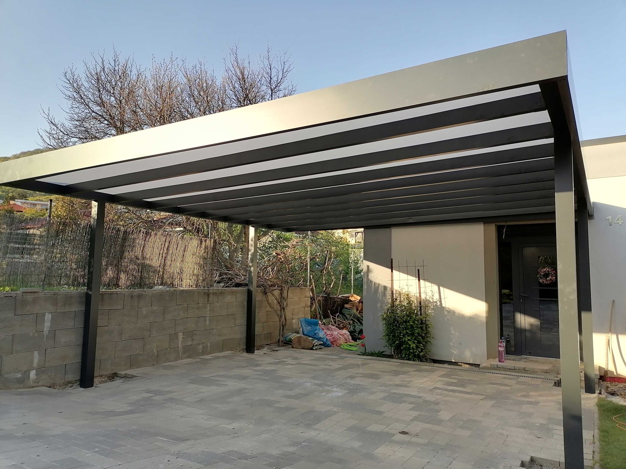 - pergoly na auto s plechovou strechou