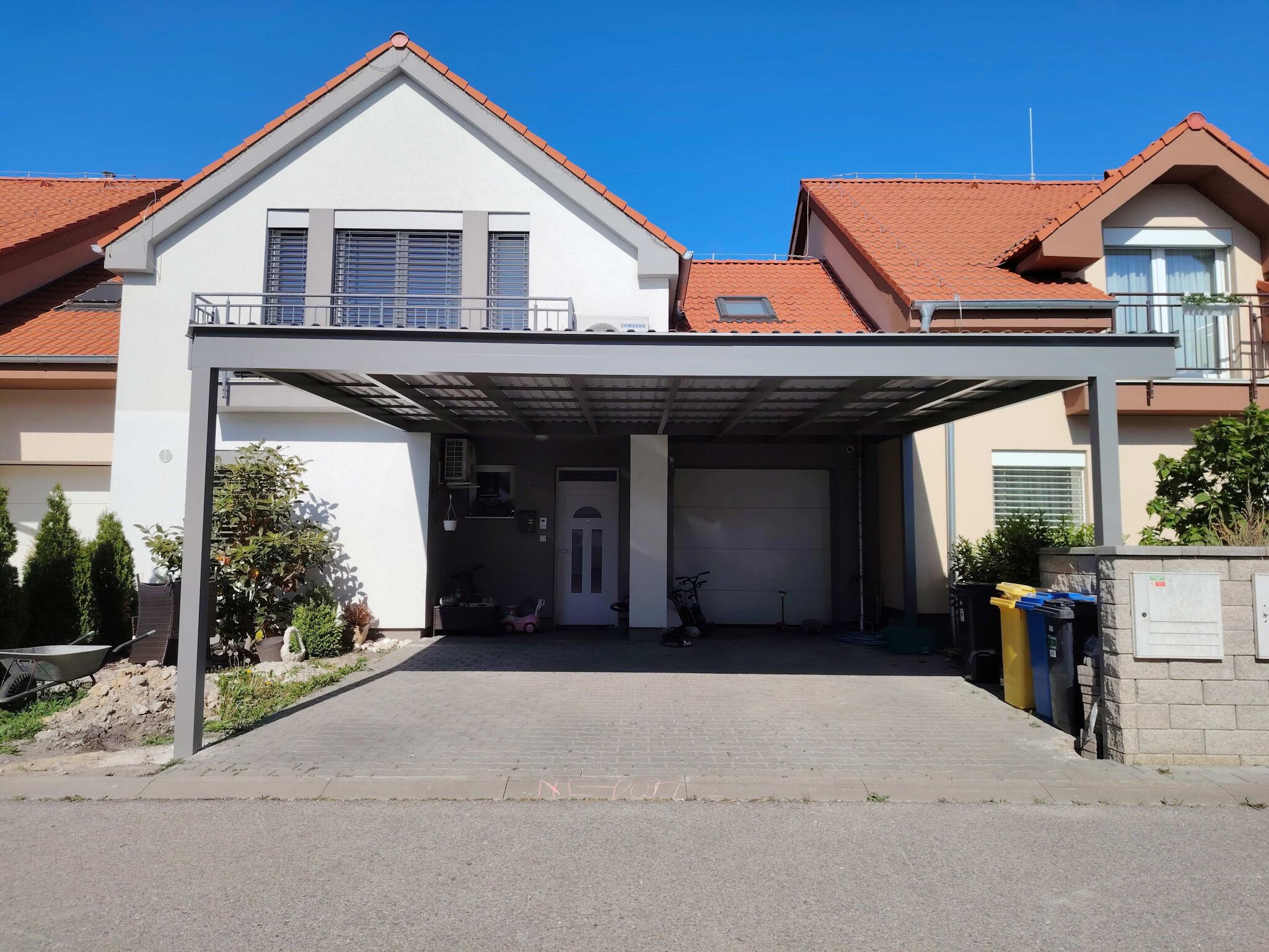 - pergola na auto s pevným izolovaným panelom